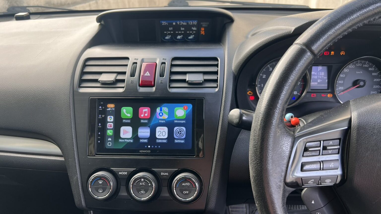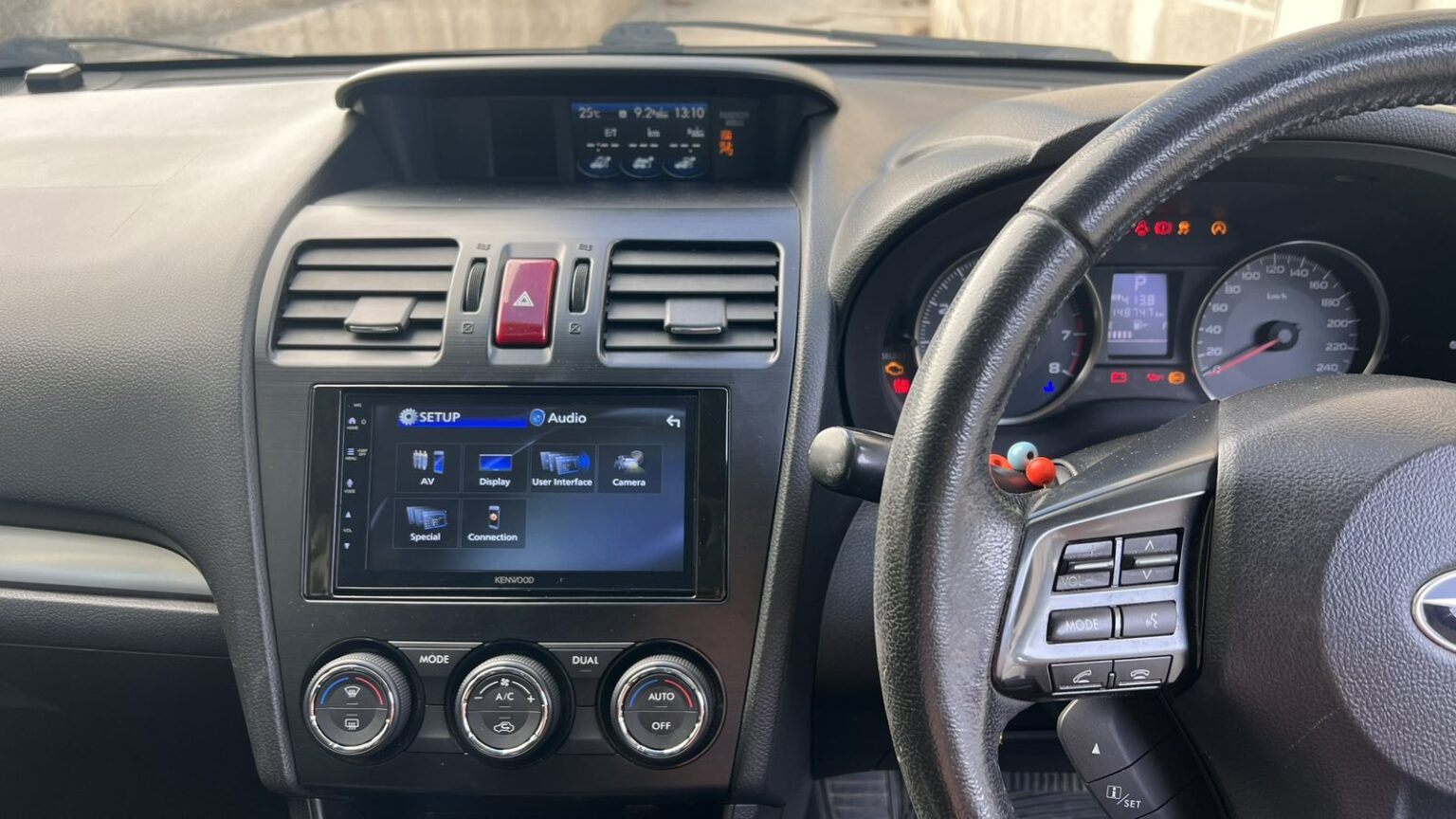 Using a steering wheel control adapter, all original buttons on the Forester are fully functional with the Kenwood system. This ensures intuitive control of volume, track selection, and calls without removing hands from the wheel.