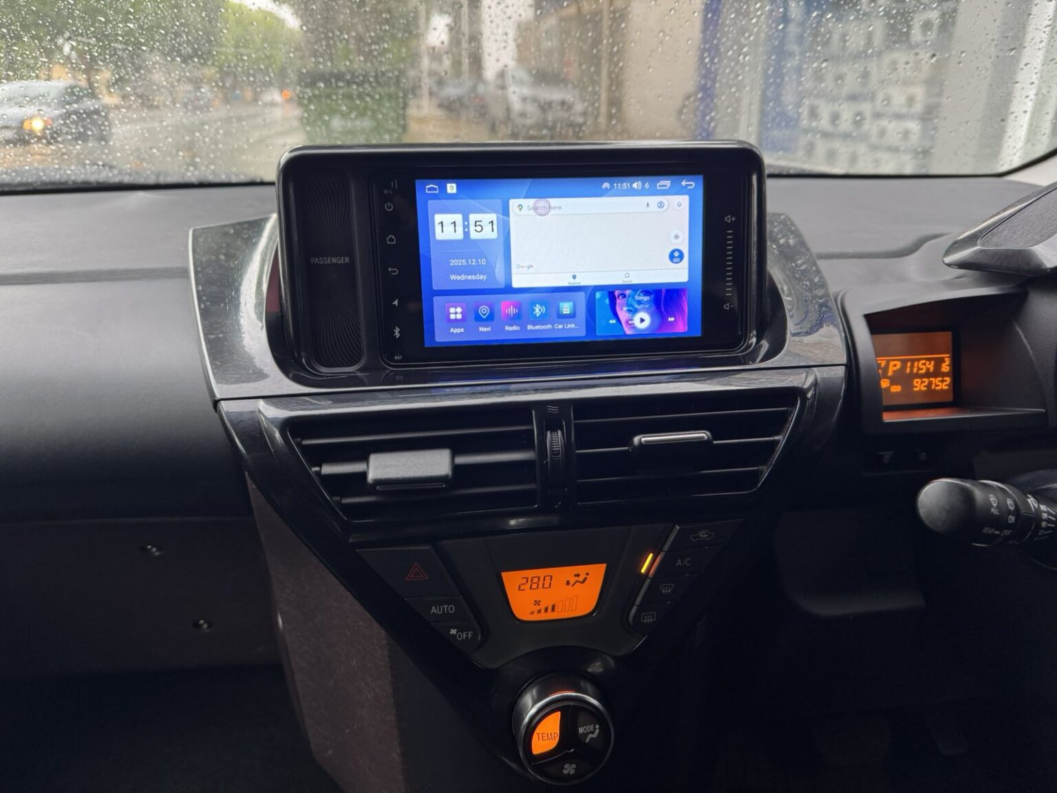 The new 7-inch capacitive touchscreen fits perfectly into the Toyota iQ dashboard, providing a clear, responsive interface while maintaining the original look of the interior. Despite the car’s compact size, the screen offers excellent visibility for everyday driving.
